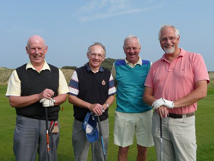 Rotarians Orr, Boreland and Loan showing off their climbing skills at Ballymoney Show